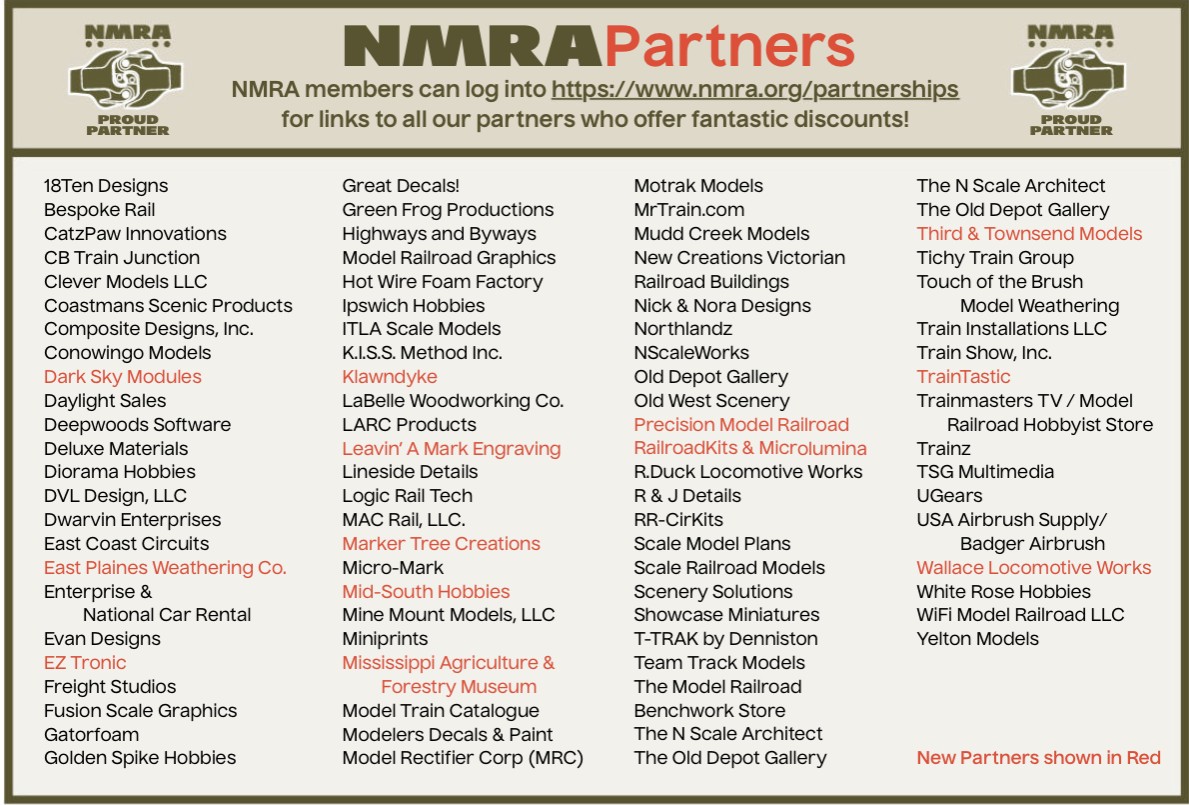 Did you know that the NMRA has a partnership program where NMRA members can receive discounts as an NMRA member? See the information below: